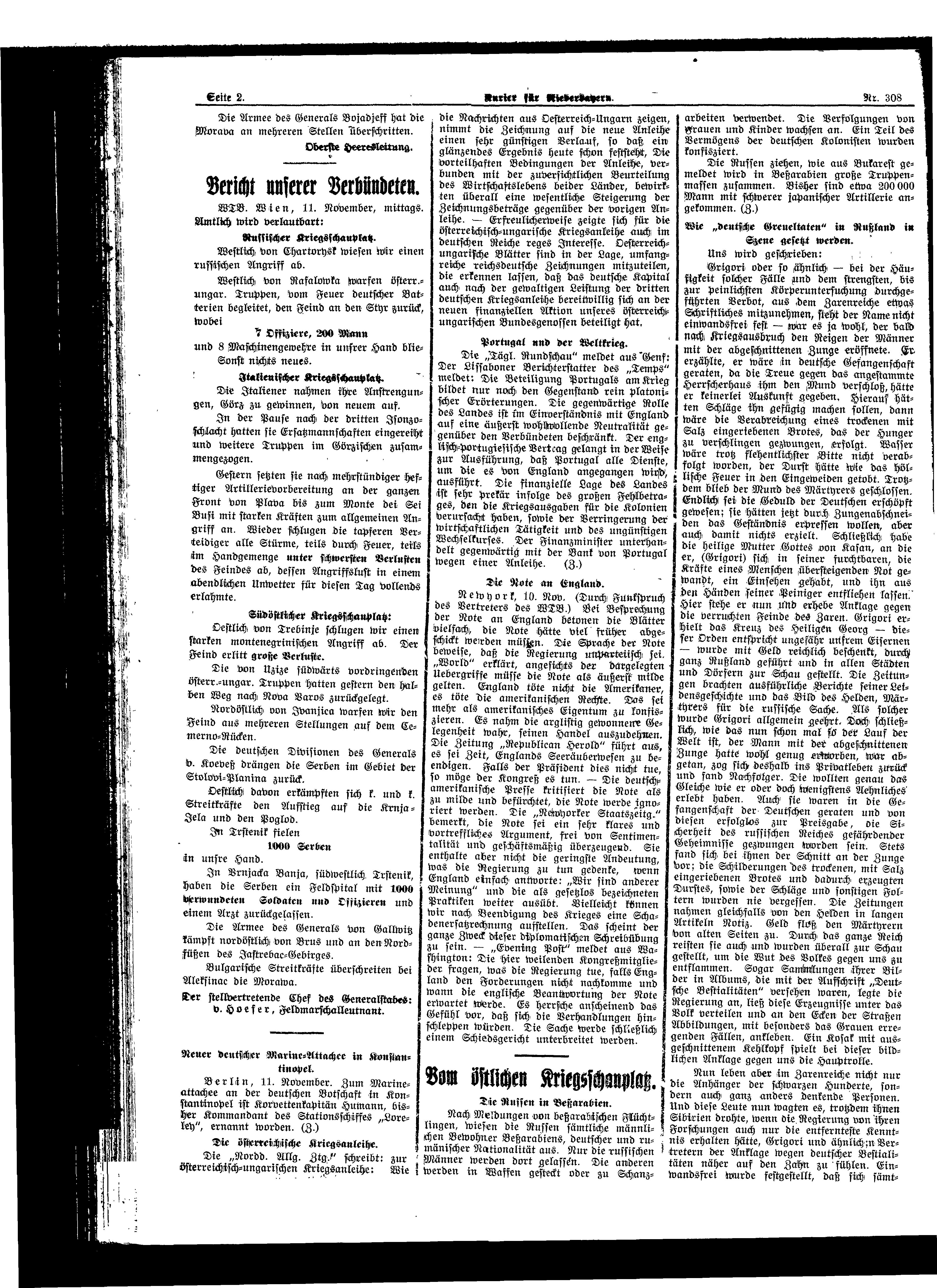 Kurier für Niederbayern, 12. November 1915