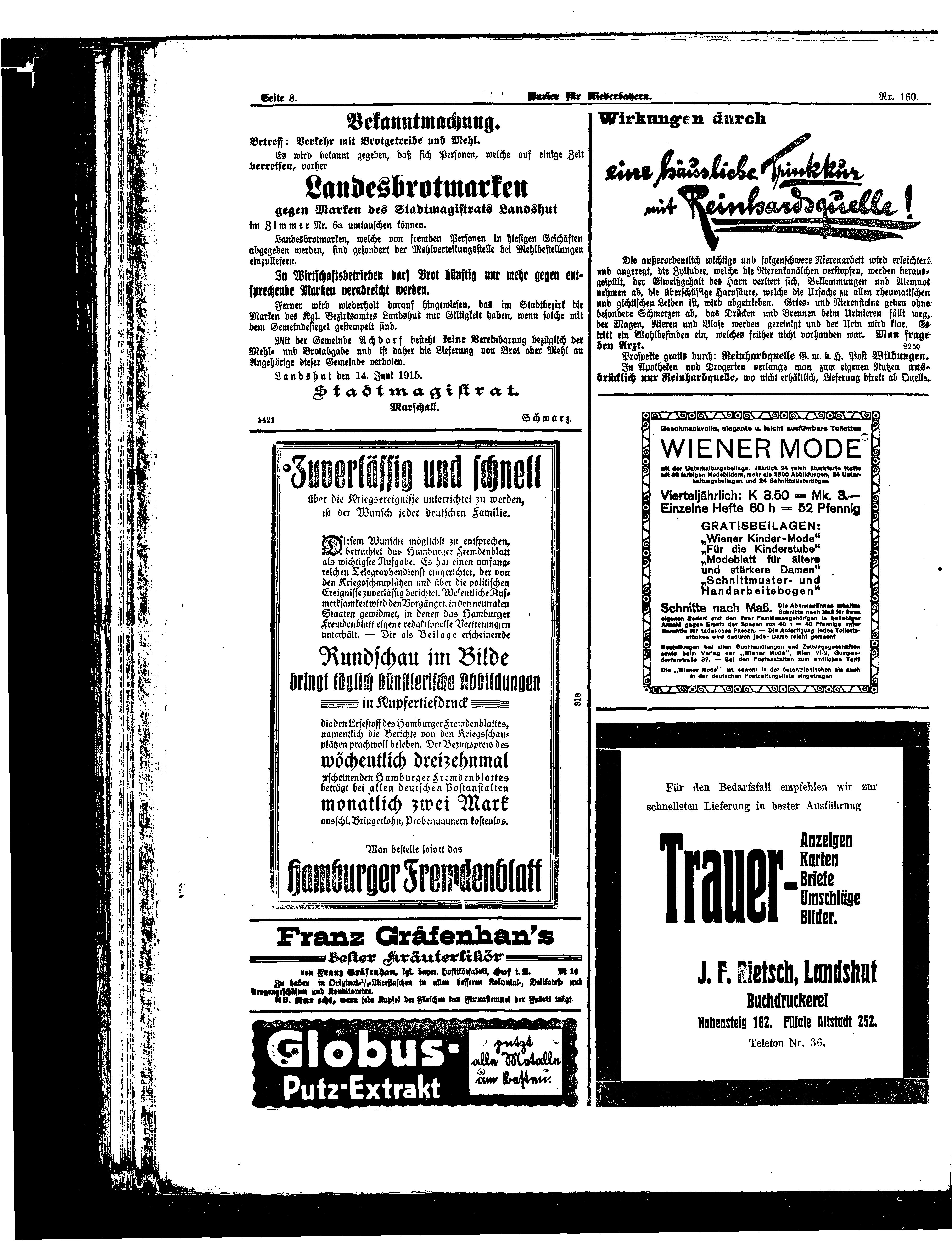 Druck u. Verlag Z. F. Rietsch, Landshut. Per» antwort!. Redakteur F.L. Wagner, Landshnt.