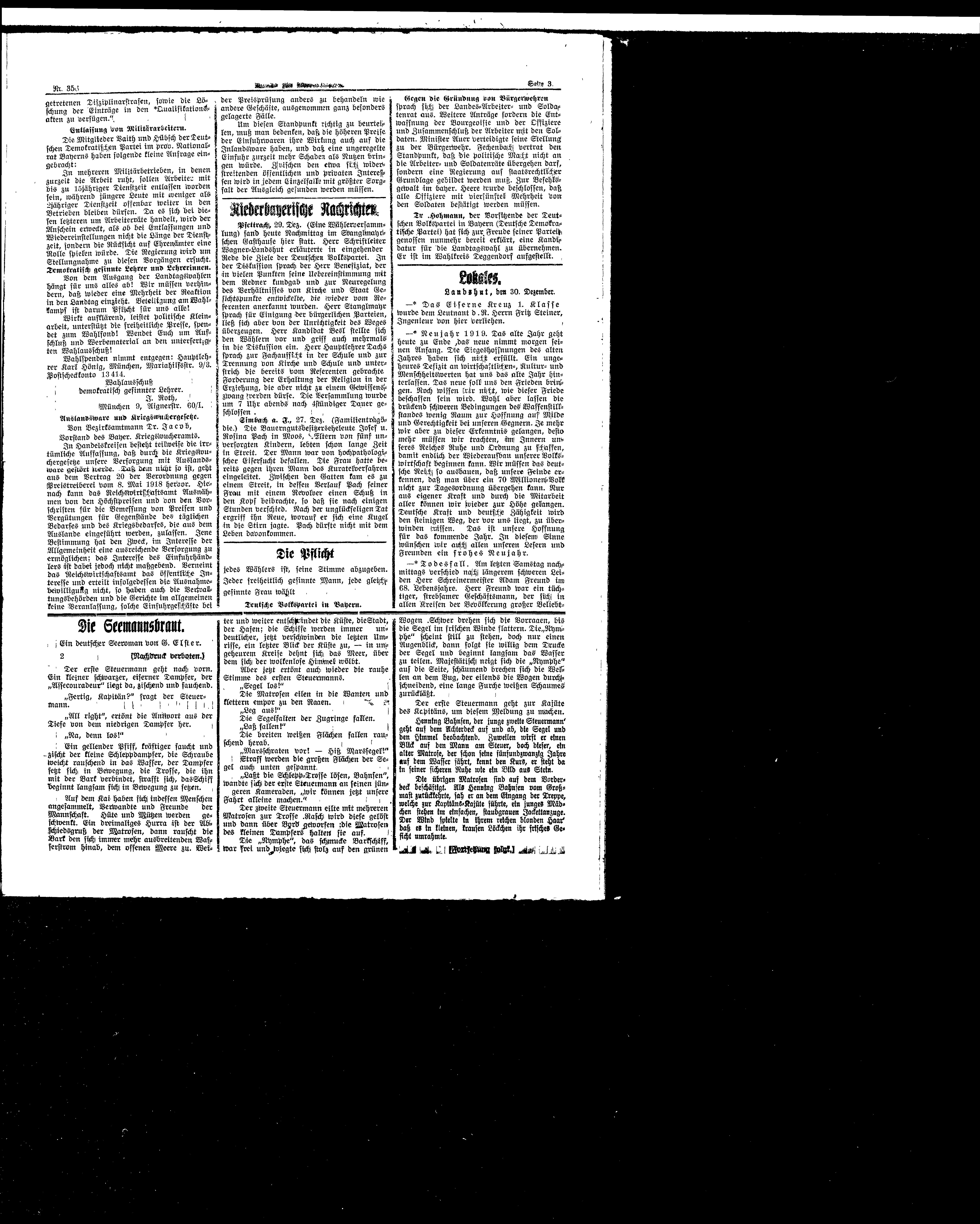 Kurier für Niederbayern, 31. Dezember 1918